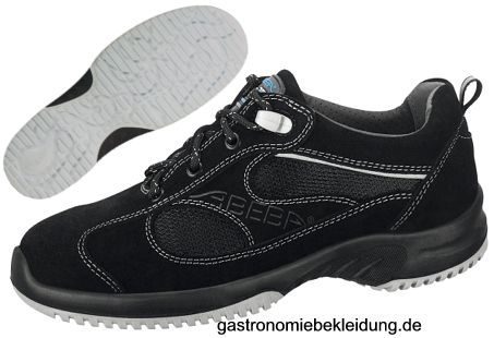 Velours schwarz mit atmungsaktivem Textil schwarz, Serie Uni6, Stahlkappe, rutschhemmende Laufsohle, auswechselbare acc Wave Einlegesohle (Art. 3576), Sanitized behandelt (geruchs- und bakterienhemmend), antistatisch, atmungsaktiv, Innenfutter "on steam®" (on steam® ist eine neue atmungsaktive High-Tech Mikrofaser. Als Innenfutter kann sie das 8-fache ihres eigenen Gewichtes an Feuchtigkeit absorbieren und sorgt so für ein optimales Klima und Trockenheit im Schuh. Technische Eigenschaften: Absorbiert Feuchtigkeit und gibt diese nach außen ab, atmungsaktiv, antimikrobiell, geruchshemmend, temperaturregulierend, antiallergen, CO2 neutrale Herstellung, Schadstoffgeprüft nach Öko-Tex Standard 100), Ristbereich mit Schnürung, Reflektorstreifen, formstabile Schaftrandpolsterung, formstabile Hinterkappe, extrem rutschhemmendes Spezialprofil, funktioneller Gelenkstabilisator, Sohle mit durchlaufenden Feuchtigkeitsrillen, dämpfende PU-Zwischensohle, CE, EN ISO 20345:2011 S1, SRC, Gr. 35-48