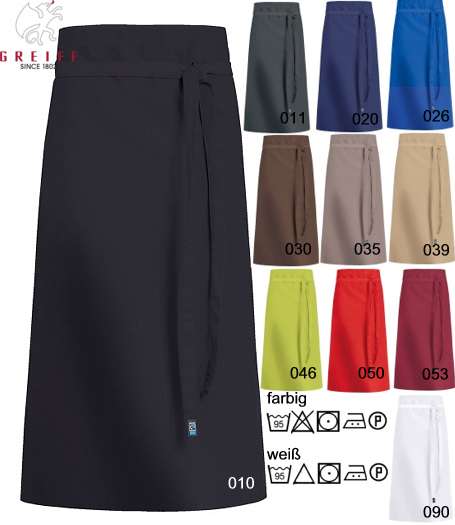 Ca. 215 g/m², 95°C waschbar, Markengewebe, genähte Stoffbänder, Breite x Länge: ca. 100 x 70cm, Greiff Schürze schwarz, anthrazit, marine, königsblau, braun, taupe, sand, kiwi, rot, bordeaux oder weiß, BITTE WÄHLEN SIE DIE FARBE AUS
