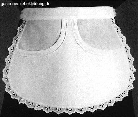 Ca. 200 g/m², Feinköper, Rocklänge ca. 45 cm, Leiber Schürze mit wirkungsvoller Stickereispitze, Taschen mit Biesen