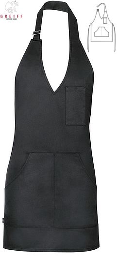 Ca. 215 g/m², 95° waschbar, Breite x Länge ca. 70 x 65 cm, schwarz oder taupe, Greiff Damen Latzschürze mit Stoffband, verstellbares Halsband, 1 Brusttasche, 2 aufgesetzte Taschen, Fleckschutz, bitte wählen Sie die Farbe aus
