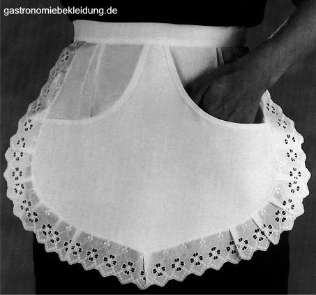 Ca. 175 g/m², Linon, Rundform, Leiber Schürze mit kräftiger Lochspitze, breite Schleifenbänder