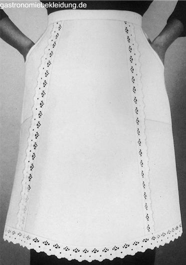 Ca. 175 g/m², Linon, große Servierhalbschürze von Leiber mit eleganter Durchbruchspitze, ca. 63 cm lang, 3-Bahnenform, Abbildung ähnlich