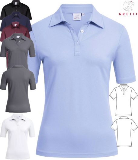 Ca. 205 g/m², 40° waschbar, Stretch, Regular Fit, Kent-Kragen, Knopfleiste mit 3 Knöpfen, Kragen aus Leibware, Greiff Poloshirt Damen in schwarz, anthrazit, marine, bleu, taupe und weiß erhältlich, BITTE WÄHLEN SIE DIE FARBE AUS, Gr. XS-3XL