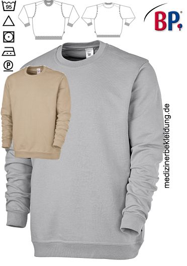 Ca. 320 g/m², einlauf- und formstabil durch Vorwäsche, farbecht, chlorecht und kochfest durch hochwertige Färbeverfahren, Schulterverstärkung für mehr Formstabilität, 1/1-Arm, BP Sweatshirt mit Rundhals, Ärmel- und Saumbündchen, in ecru nicht mehr erhältlich, Gr. XS-3XL