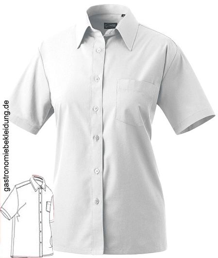 Ca. 120 g/m², 40° waschbar, Easy Care, Bluse Damen weiß mit Kentkragen, 1 lose beigelegte Brusttasche, tailliert geschnitten, knitterarm und pflegeleicht, Gr. 34-52
