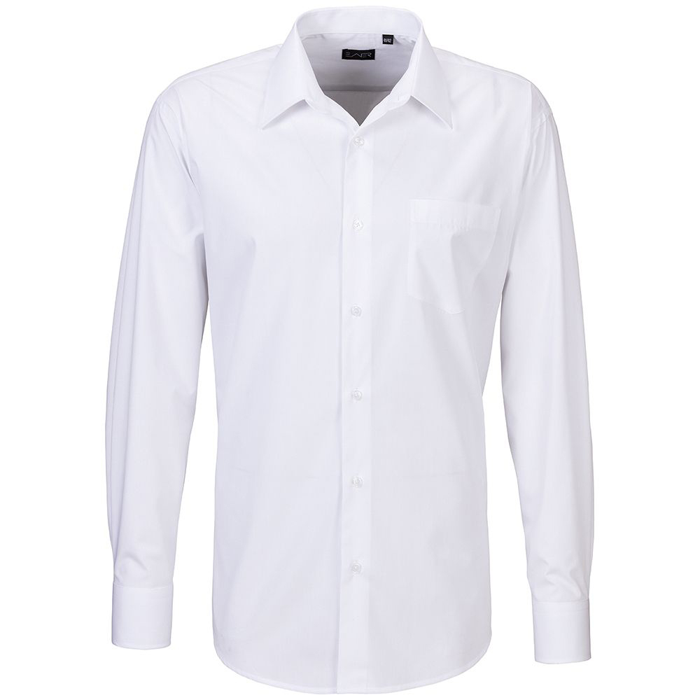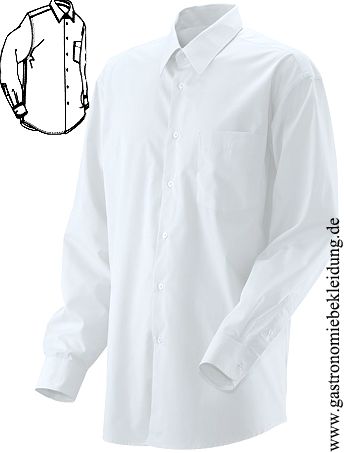 Ca. 120 g/m², 60° waschbar, knitterarm und pflegeleicht, besteht aus Bio-Baumwolle und recyceltem Polyester, Kentkragen, Berufskleidung Hemd mit 1 lose beigelegter Brusttasche, gerade geschnitten, verstellbare Manschetten, Doppel-Gr. 37/38-53/54