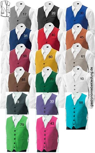 Ca. 220 g/m², 40° waschbar, bügelleichte- und Softausstattung, Serviceweste Herren mit Stoffrücken, Rückenlänge bei Gr. L ca. 58 cm, 1 Brust-, 2 Seitentaschen, 1 Innentasche, 5 Knöpfe, in weiß (mit weißen Knöpfen), silbergrau, graphit, schwarz, königsblau, marine, purple, rot, terracotta, bordeaux, gelb, sand, toffee, flaschengrün, lemon green, hotpink und türkis erhältlich, bitte wählen Sie die Farbe aus, Gr. S-3XL,