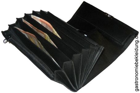 Kellnerbörse, schwarz, 6 Fächer, Leder, Kellnerportemonaie