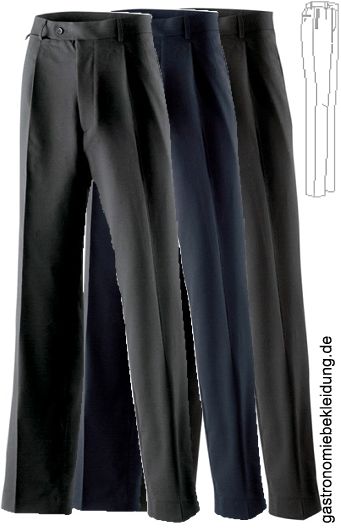 Ca. 285 g/m², 30° waschbar, Bi-Stretch, knitterarm, schmutzabweisend, Kellnerhose in schwarz, anthrazit und marineblau erhältlich, 2 Seitentaschen, 1 Gesäßtasche, Vorderhosenfutter, Gürtelschlaufen, mit Abnähern, Lieferung erfolgt ohne Gürtel, BITTE WÄHLEN SIE DIE FARBE AUS,