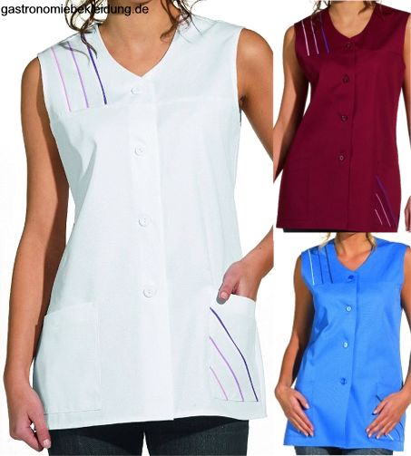 Ca. 190 g/m², 60° waschbar, Leiber Kasack mit 2 Seitentaschen, Knopfleiste, attraktive Paspelierungen an Schulter und Seitentasche, Paspelierung in bordeaux und caribic-blau erhältlich, bitte wählen Sie die Farbe aus, Gr. 36-48