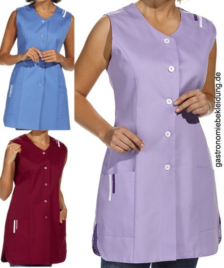 Ca. 190 g/m², 60° waschbar, Leiber Kasack ohne Arm in bordeaux und caribicblau erhältlich (flieder nicht mehr lieferbar), 2 Seitentaschen, Teilungsnähte, farbiger Besatz an Schulter und Tasche, Rundsaum, Rückenlänge bei Gr. 38 ca. 83 cm, bitte wählen Sie die Farbe aus, Gr. 36-54