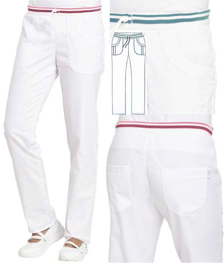 Ca. 190 g/m², 60° waschbar, ISO 15797 / PRO-Label Industriewäsche geeignet, Classic-Style, Leiber Berufshose weiß mit elastischem Strickbund, komfortable Hüftweite, normale Leibhöhe, gerades Bein, 2 Seitentaschen, 2 Gesäßtaschen, moderner, bequemer Strickbund mit kontrastfarbigem Einsatz und Kordelband, Schrittlänge ca. 80 cm, in den Strickbundfarben weiß/beere und weiß/petrol erhältlich, bitte wählen Sie die Farbe aus, Gr. 34-50