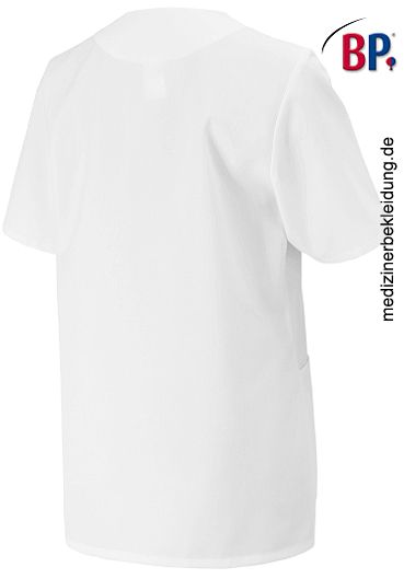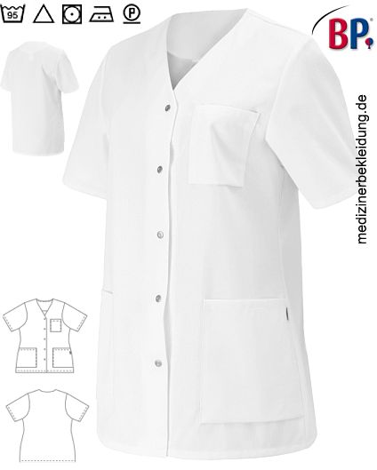 Ca. 205 g/m², pflegeleicht, kochfest, Industriewäsche geeignet, weiß, BP Kittel mit Druckknopfleiste, 1/2-Arm, 1 Brusttasche, 2 Seitentaschen, bequeme Weite, Rückenlänge ca. 75 cm, Gr. 32n-58n