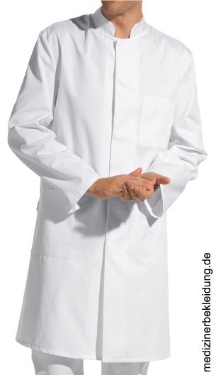 Ca. 215 g/m², 95° waschbar, Clean Dress, Industriewäsche geeignet, Leiber Arztkittel Herren mit Stehkragen, verdeckte Druckknopfleiste, 2 Seitentaschen, 1 Brusttasche, Gehschlitz, Rückenlänge bei Gr. 50 ca. 95 cm, Gr. 46-58; 90-110