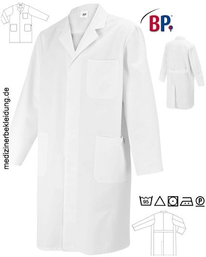 Ca. 215 g/m², 95° waschbar, pflegeleicht, Industriewäsche geeignet, weiß, weisser Arbeitskittel BP mit verdeckten Druckknöpfen, Reverskragen, verdeckte Druckknopfleiste, 1/1-Arm, 1 Brusttasche, 2 Seitentaschen, Rückengurt, Rückenschlitz, Rückenlänge ca. 110 cm, bitte wählen Sie die Länge aus, Gr. 44n-66n, 46l-56l