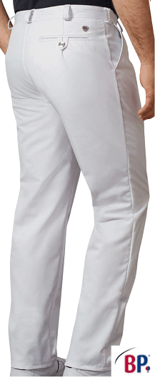 Ca. 240 g/m², Stretch, pflegeleicht, kochfest, Industriewäsche geeignet, weiß, BP Arbeitshose mit 2 Seitentaschen, 1 verschließbare Gesäßtasche, Gürtelschlaufen, LIEFERUNG ERFOLGT OHNE GÜRTEL, Schrittlänge der Kurzgrößen = ca. 78 cm, Normalgrößen = ca. 83 cm und Lang-Größen = ca. 88 cm, Gr. 44n-64n, 44l-56l, 48s-62s