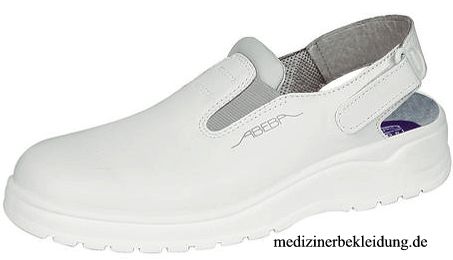 weiß, modischer Sicherheitsclog, EN ISO 20345:2012, antistatisch, Stahlkappe (200 Joule), verstellbarer Fersenriemen mit Klett-Schnellverschluss, Obermaterial Leder, Spezialinnenfutter schweiß- und feuchtigkeitsabsorbierend, Gummizug im Ristbereich, Fersenriemen feststehend, verstellbar, auswechselbares acc-Wave Einlegesohle (Art. 3556), rutschhemmende PU-Sohle, küchengeeignet, SB A, E, FO, SRA, Gr. 35-48