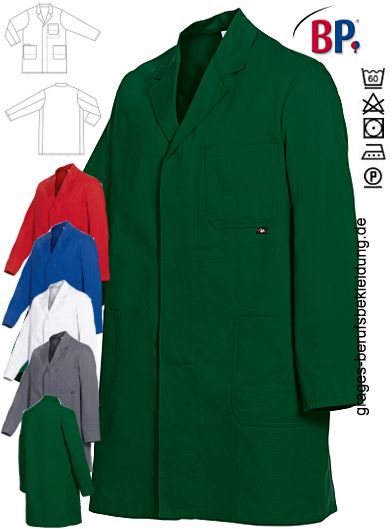 Ca. 200 g/m², 3/4-Länge (Rückenlänge ca. 96 cm), BP Mantel in weiß, königsblau oder dunkelgrau erhältlich (mittelgrün und rot leider nicht mehr lieferbar), verdeckte Knopfleiste, 1 Brusttasche, 2 Seitentaschen, davon 1 mit Universaltasche, 1 Innentasche, bitte wählen Sie die Farbe aus. Gr. 44/46-64/66