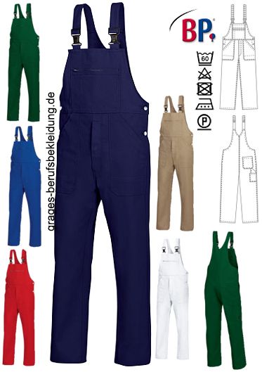 Ca. 300 g/m², Stoffträger mit Gummieinsatz, BP Latzhose mit Kunststoff-Steckschnallen, doppelte Latztasche, davon 1 mit verdecktem Reißverschluss, 1 Stifttasche, 2 Seitentaschen, 1 verschließbare Gesäßtasche, doppelte Zollstocktasche, Schlitzreißverschluss, hochgezogener Rücken, verstellbare Bundweite, in dunkelblau, königsblau und weiß erhältlich (sand, mittelgrün und rot leider nicht mehr lieferbar), bitte wählen Sie die Farbe aus, Gr. 44-64, 90-114, 24-29
