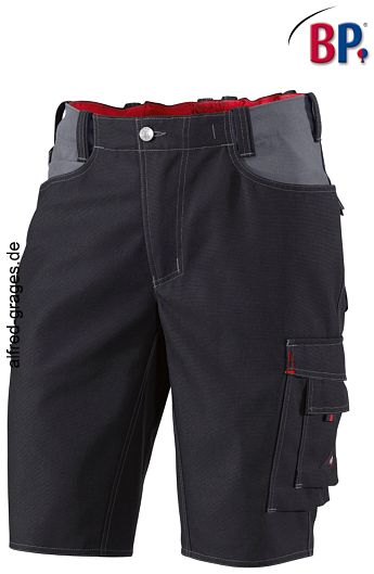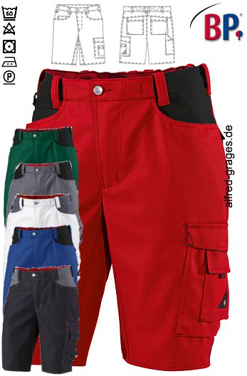 Ca. 290 g/m², 60° waschbar, BP® Arbeitshose kurz mit doppelten Bundknopf und rückwärtigem Dehnbund für optimalen Sitz, ergonomischer Schnitt, D-Ring zum Befestigen von Accessoires, 2 Seitentaschen mit 1 Geldtasche, 2 Gesäßtaschen mit Halbtresor-Taschenklappen, freihängende doppelte Zollstocktasche, Schrittlänge ca. 30 cm, Gürtelschlaufen, LIEFERUNG ERFOLGT OHNE GÜRTEL, in königsblau, schwarz, mittelgrün und dunkelgrau erhältlich (weiß, rot leider nicht mehr lieferbar), bitte wählen Sie die Farbe aus, Gr. 44n-60n