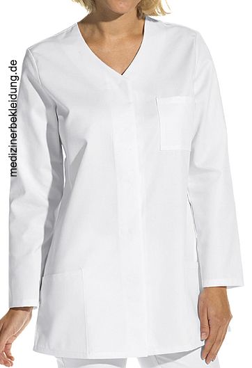 Ca. 190 g/m², 95° waschbar, Clean Dress, Industriewäsche geeignet, Leiber Damen Kasack weiß mit 2 Seitentaschen, 1 Brusttasche, verdeckte Druckknopfleiste, Rückenlänge bei Gr. 38 ca. 76 cm, Gr. 34-52