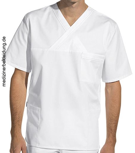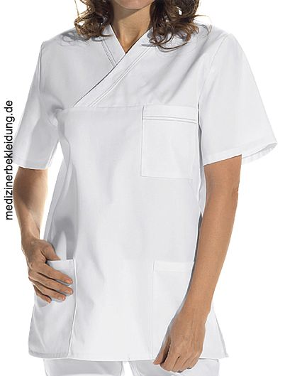 Ca. 215 g/m², 95° waschbar, ISO 15797 / PRO-Label 2 Industriewäsche geeignet, 1/2 Arm, Leiber Schlupfkasack weiß mit Kontraststeppung, 2 Seitentaschen, 1 Brusttasche, Seitenschlitze, Rückenlänge Gr. M = ca. 75 cm, Gr. XS-3XL