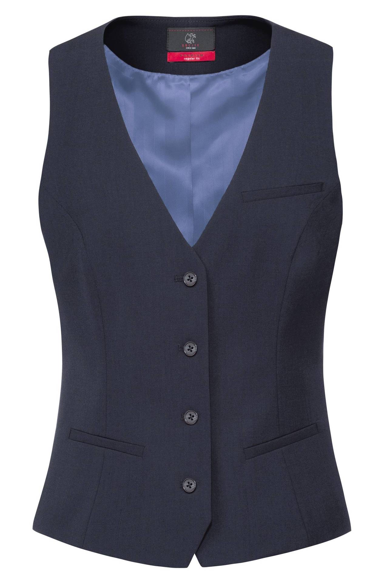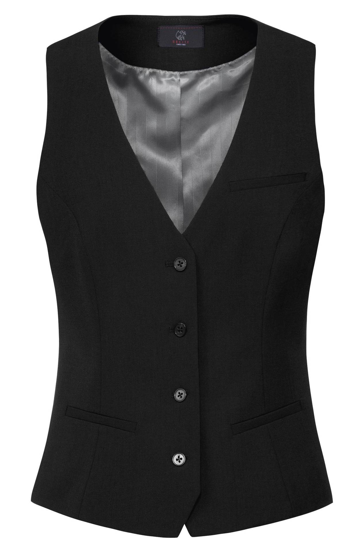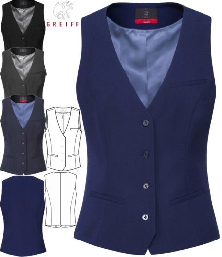 Ca. 200 g/m², 30° waschbar, Stoffrücken, 2 Seitentaschen, 1 Brustleistentasche, 1 Innentasche, Stoffrücken, Rückenlänge bei Gr. 38 ca. 54 cm, wasser- und schmutzabweisend, Bi-Stretch, Greiff Weste Damen in schwarz, anthrazit, marine, italian blue und olivgrün erhältlich, bitte wählen Sie die Farbe aus, Gr. 32-54