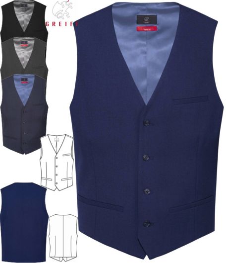Ca. 200 g/m², 30° waschbar, wasser- und schmutzabweisend, Bi-Stretch, Stoffrücken, 2 Leistentaschen, 1 Brustleistentasche, 1 Innentasche, Rückenlänge bei Gr. 50 ca. 58 cm, Greiff Weste Herren in schwarz, anthrazit, marine, italien blue und olivgrün erhältlich, bitte wählen Sie die Farbe aus, Gr. 44-68, 90-114