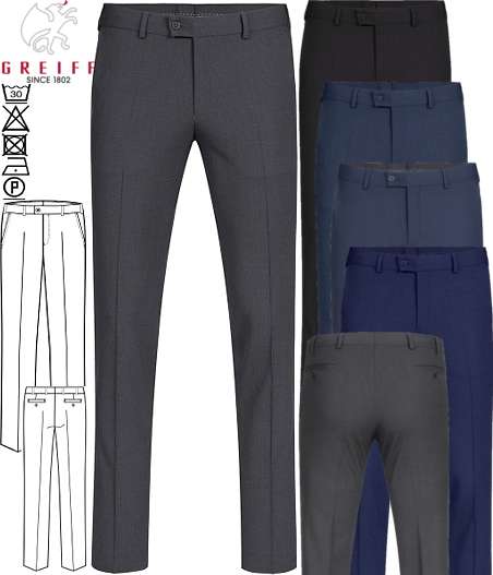 Ca. 200 g/m², 30° waschbar, wasser- und schmutzabweisend, Bi-Stretch, niedrige Leibhöhe, ohne Abnäher, Gürtelschlaufen, LIEFERUNG ERFOLGT OHNE GÜRTEL, Dehnbund, 2 Seitentaschen, 2 Gesäßtaschen, Vorderhosenfutter, Fußweite bei Gr. 50 ca. 42 cm, Schrittlänge bei Gr. 50 ca. 82 cm, Greiff Hose in schwarz, anthrazit und marine erhältlich (blau Mikrodessin, italian blue und royalblau nicht mehr lieferbar), bitte wählen Sie die Farbe aus, Gr. 42-54, 90-106