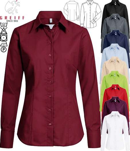Ca. 130 g/m², 60° waschbar, easy-care, Regular Fit, Stretch, Kent-Kragen, breite Doppelknopf-Manschette, Greiff Blusen in schwarz, anthrazit, marine, bleu, taupe, beige, rot, bordeaux, brombeere, mint und weiß erhältlich, bitte wählen Sie die Farbe aus, Gr. 32-54