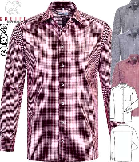 Ca. 100 g/m², 40° waschbar, easy-care, Basic, Regular Fit, Krempelarm mit Knopf, Greiff Hemden kariert mit Kent-Kragen, in den Farben vichy karo schwarz, vichy karo dunkelblau, vichy karo rot und vichy karo grün erhältlich, bitte wählen Sie die Farbe aus, Gr. 35/36-47/48