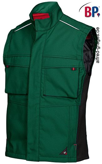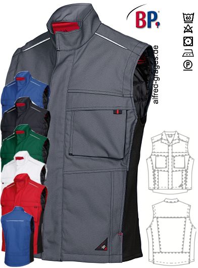 Ca. 295 g/m², 60° waschbar, wattiert mit wärmendem Thermosteppfutter, BP Weste mit Reflexpaspel, seitliche Stretcheinsätze für mehr Beweglichkeit, Öko-Tex Standard 100, Industriewäsche-geeignet nach ISO 15797, in königsblau/schwarz, weiß/dunkelgrau, schwarz/dunkelgrau, dunkelgrau/schwarz, mittegrün/schwarz erhältlich (rot/schwarz nicht mehr lieferbar), bitte wählen Sie die Farbe aus, Gr. S-3XL