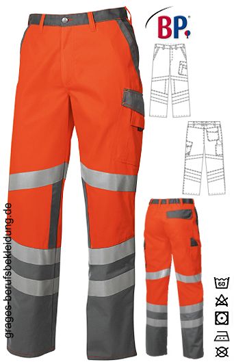 Ca. 270 g/m², 60° waschbar, BP Warnschutzkleidung orange, rückwärtiger Dehnbund für optimalen Sitz, 2 Seitentaschen, Schenkeltasche mit aufgesetzter Smartphone- und Stifttasche, Schenkel- und Smartphonetasche mit Patte verschließbar, doppelte Zollstocktasche, 1 mit Patte verschließbare Gesäßtasche, je 2 umlaufende Reflexstreifen auf dem unteren Bein, je 1 umlaufender Reflexstreifen auf dem oberen Bein, integrierter UV Schutz nach Standard 801, perfekte Sichtbarkeit durch Bodylanguage, hoher Tragekomfort durch innenliegende Baumwolle, DuraClean Ausrüstung als Schmutzbarriere, Schrittlänge ca. 83 cm, LIEFERUNG ERFOLGT OHNE GÜRTEL, Öko-Tex Standard 100, Industriewäsche-geeignet nach ISO 15797, 360° Sichtbarkeit, Gr. 44n-64n, 48l-54l, 48s-56s