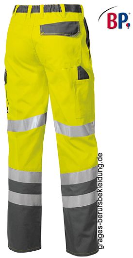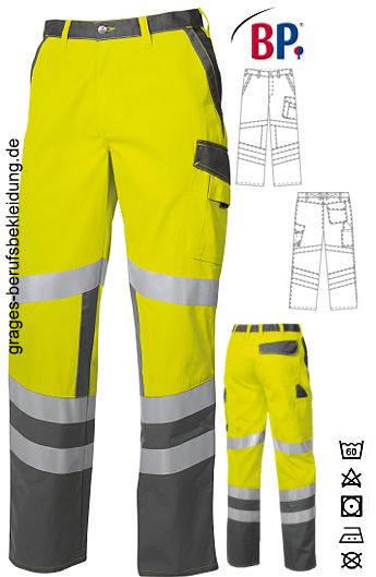 Ca. 270 g/m², 60° waschbar, rückwärtiger Dehnbund für optimalen Sitz, BP Arbeitshose mit 2 Seitentaschen, Schenkeltasche mit aufgesetzter Smartphone- und Stifttasche, Schenkel- und Smartphonetasche mit Patte verschließbar, doppelte Zollstocktasche, 1 mit Patte verschließbare Gesäßtasche, je 2 umlaufende Reflexstreifen auf dem unteren Bein, je 1 umlaufender Reflexstreifen auf dem oberen Bein, integrierter UV Schutz nach Standard 801, perfekte Sichtbarkeit durch Bodylanguage, hoher Tragekomfort durch innenliegende Baumwolle, DuraClean Ausrüstung als Schmutzbarriere, Schrittlänge ca. 83 cm, LIEFERUNG ERFOLGT OHNE GÜRTEL, Öko-Tex Standard 100, Industriewäsche-geeignet nach ISO 15797, 360° Sichtbarkeit, Gr. 44n-64n, 48l-54l, 48s-56s