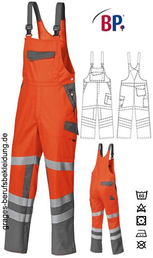 Ca. 270 g/m², 60° waschbar, BP Warnschutzkleidung orange, Stretchträger mit Kunststoff-Steckschnallen, doppelte Latztasche mit Patte verschließbar, davon 1 mit verdecktem Reißverschluss, 2 Stifttaschen, 2 Seitentaschen, Schenkeltasche mit aufgesetzter Smartphone- und Stifttasche, Schenkel- und Smartphonetasche mit Patte verschließbar, hochgezogener Rücken, doppelte Zollstocktasche, 1 mit Patte verschließbare Gesäßtasche, je 2 umlaufende Reflexstreifen auf dem unteren Bein, je 1 umlaufender Reflexstreifen auf dem oberen Bein, Bundweite regulierbar durch verstellbaren Stretchkeil BP Flex, integrierter UV Schutz nach Standard 801, perfekte Sichtbarkeit durch Bodylanguage, hoher Tragekomfort durch innenliegende Baumwolle, DuraClean Ausrüstung als Schmutzbarriere, Schrittlänge ca. 81 cm, Öko-Tex Standard 100, Industriewäsche-geeignet nach ISO 15797, 360° Sichtbarkeit, Gr. 44n-64n, 48l-54l, 48s-56s
