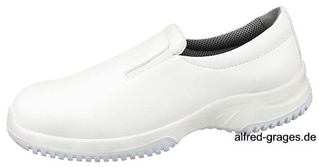 A-micro weiß (extrem widerstandsfähiges Microfaser-Material), Serie Uni6, Stahl-Schutzkappe, Zehenschutz (200 Joule), Energieaufnahmevermögen im Fersenbereich, antistatisch, Sohle kraftstoffbeständig, Beständigkeit der Schuhoberfläche gegen Wasserdurchtritt und Wasseraufnahme, küchengeeignet, bis 30°C waschbar, rutschhemmende Laufsohle, auswechselbare acc Wave Einlegesohle (Art. 3576), Sanitized behandelt (geruchs- und bakterienhemmend), Innenfutter mit Silver Point (feuchtigkeitsabsorbierend, eingebauter Schutz durch Silberionen), Ristbereich mit Gummizug, HACCP-gerecht, besonders für den Einsatz in hygienisch sensiblen Bereichen geeignet, CE, EN ISO 20345:2012 S2, SRC, Gr. 35-48