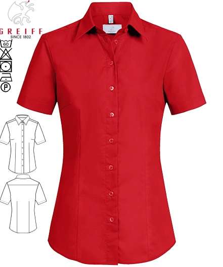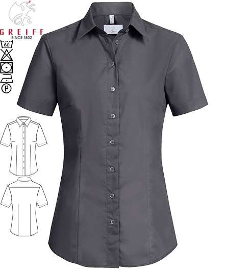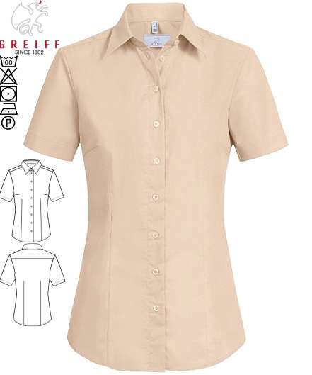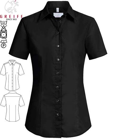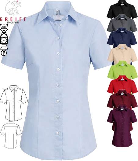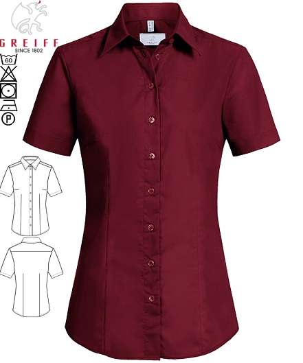 Ca. 130 g/m², 60° waschbar, easy-care, Stretch, Basic, Regular Fit, Kent-Kragen, kurzarm, Greiff Blusen in schwarz, anthrazit, marine, bleu, beige, taupe, beige, rot, bordeaux, brombeere und mint erhältlich, bitte wählen Sie die Farbe aus, Gr. 32-54