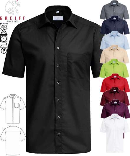 Ca. 130 g/m², 60° waschbar, Regular Fit, easy-care, Stretch, New Kent-Kragen, 1 Brusttasche, halbarm, Greiff Hemd kurzarm in schwarz, anthrazit, marine, bleu, taupe, beige, rot, bordeaux, brombeere, mint und weiß erhältlich, bitte wählen Sie die Farbe aus, Gr. 35/36-47/48