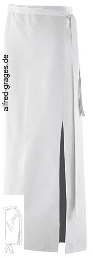 Ca. 230 g/m², 90° waschbar, Bistro Schürze mit seitlichem Schlitz links und durchgehenden Stoffbändern, Breite x Länge ca. 100 x 100 cm, Öko-Tex Standard 100, Bügelleichte- und Softausstattung