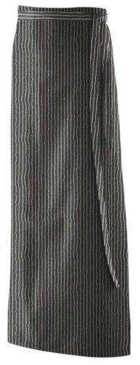 Ca. 230 g/m², 75° waschbar, extra breite Schürze mit durchgehenden Stoffbändern, Breite x Länge ca. 130x100 cm, rundum geschlossen, Öko-Tex Standard 100, Bügelleichte- und Softausstattung, Gastronomie Schürze Nadelstreifen