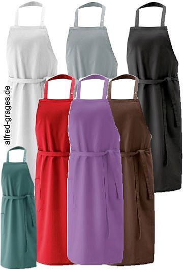 Ca. 220 g/m², 75° waschbar, Gastronomie Latzschürze mit Seitentasche und genähten Stoffbänder, verstellbares Halsband mit Druckknöpfen, Breite x Länge ca. 100x100 cm, Tasche BxH ca. 20x18 cm, Öko-Tex Standard 100, Bügelleichte- und Softausstattung, Latzschürze in weiß, graphit, silbergrau, schwarz, purple, rot, bordeaux und toffee erhältlich, bitte wählen Sie die Farbe aus