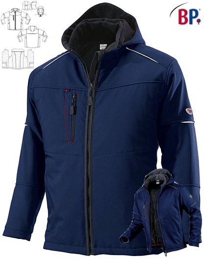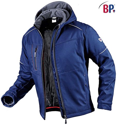 Ca. 300 g/m², komplett wattiert mit wärmendem Thermosteppfutter, BP Jacke mit Stehkragen, abzippbare und weitenregulierbare Kapuze, Frontreißverschluss mit Fleece-Kinnschutz, 1 Brusttasche und 2 Seitentaschen mit Reißverschluss, Reflexpaspel, ergonomisch geformter Ärmel, Windschutz am Ärmelabschluss, Armliftsystem für mehr Beweglichkeit, 2 Innentaschen, innenliegende Saumweitenverstellung, verlängerte Rückenpartie, Öko-Tex Standard 100, auf Basis von INTEX, Rückenlänge ca. 77 cm, Gr. XS-3XL