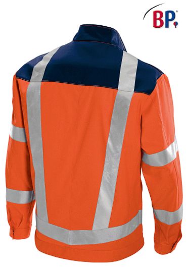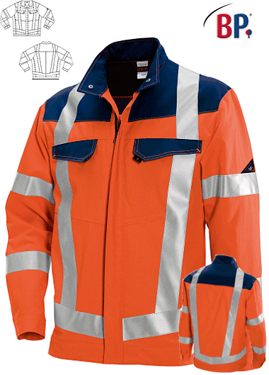 Ca. 270 g/m², 60° waschbar, Industriewäsche-geeignet nach ISO 15797, Öko-Tex Standard 100, Stehkragen, verdeckter Reißverschluss, 2 mit Patte verschließbare Brusttaschen, BP Arbeitsjacke mit 2 Seitentaschen, 1 Innentasche, 1 innenliegende Smartphonetasche mit Patte, verschließbare Ärmelbündchen, je 2 Reflexstreifen auf dem Ärmel, 1 umlaufender Reflexstreifen oberhalb des Bundes, je 2 umlaufende vertikale Reflexstreifen vorne und hinten, persönliche Schutzausrüstung (PSA) nach EN ISO 20471, integrierter UV Schutz nach Standard 801, perfekte Sichtbarkeit durch Bodylanguage, hoher Tragekomfort durch innenliegende Baumwolle, DuraClean Ausrüstung als Schmutzbarriere, Rückenlänge ca. 75 cm, Gr. 44/46n-64/66n, 48/50l-52/54l