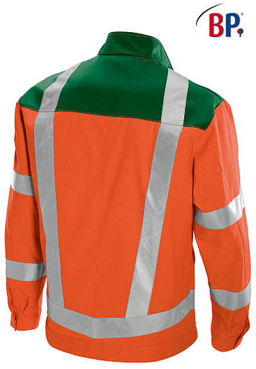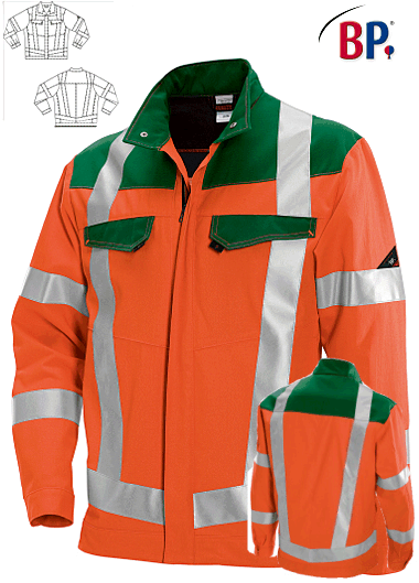 Ca. 270 g/m², 60° waschbar, Industriewäsche-geeignet nach ISO 15797, Öko-Tex Standard 100, Stehkragen, verdeckter Reißverschluss, 2 mit Patte verschließbare Brusttaschen, BP Arbeitsjacke mit 2 Seitentaschen, 1 Innentasche, 1 innenliegende Smartphonetasche mit Patte, verschließbare Ärmelbündchen, je 2 Reflexstreifen auf dem Ärmel, 1 umlaufender Reflexstreifen oberhalb des Bundes, je 2 umlaufende vertikale Reflexstreifen vorne und hinten, persönliche Schutzausrüstung (PSA) nach EN ISO 20471, integrierter UV Schutz nach Standard 801, perfekte Sichtbarkeit durch Bodylanguage, hoher Tragekomfort durch innenliegende Baumwolle, DuraClean Ausrüstung als Schmutzbarriere, Rückenlänge ca. 75 cm, Gr. 44/46n-64/66n