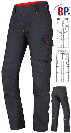 Ca. 410 g/m², 60° waschbar, Industriewäsche-geeignet nach ISO 15797, Öko-Tex Standard 100, persönliche Schutzausrüstung (PSA) nach EN ISO 11611 cl.2-A1; EN ISO 11612 A1, B1, C1, E2, F1; EN 1149-5; EN 61482-1-2 cl.1, weiches Gewebe für maximalen Tragekomfort, inhärenter/permanenter Flammschutz, Schweißverfahren Klasse 2 für alle herkömmlichen Schweißarbeiten, ergonomische Passform für mehr Bewegungsfreiheit, doppelter Bundknopf und rückwärtiger Dehnbund für optimalen Sitz, ergonomischer Schnitt, BP Hose mit 2 Seitentaschen, 1 geräumige Schenkeltasche mit innenliegender Smartphonetasche, Schenkeltasche mit Patte verschließbar, 1 Zollstocktasche mit aufgesetzten Stifttaschen mit Patte verschließbar, 1 mit Patte verschließbare Gesäßtasche, vorgeformtes Bein, Reflexpaspeln seitlich und hinten im unteren Beinbereich, Knieeinschubtaschen für Kniepolster 1839 000 53 (bitte separat bestellen), Lieferung erfolgt ohne Gürtel, Schrittlänge ca. 83 cm, Gr. 44n-64n, 48l-54l, 48s-58s
