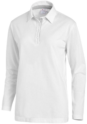Ca. 220 g/m², 60° waschbar, Leiber unisex Polohemd langarm, weiß mit silbergrauen Kragen-Innenband und Knopfleiste, Stretch-Gewebe, hoher Tragekomfort, für Männer und Frauen, Gr. XS-3XL