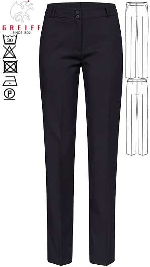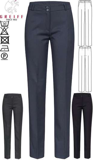 Ca. 235 g/m², 30° waschbar, Stretch, wasser- und schmutzabweisend, Lycra, mittlere Leibhöhe, schmaler Beinverlauf, Gürtelschlaufen, LIEFERUNG ERFOLGT OHNE GÜRTEL, 2 Seitentaschen, Kartentasche, Vorderhosenfutter, Fußweite bei Gr. 38 ca. 38 cm, Schrittlänge ca. 82 cm, Greiff Damen Hose in schwarz, anthrazit und marine erhältlich, BITTE WÄHLEN SIE DIE FARBE AUS, Gr. 32-44, 68-84