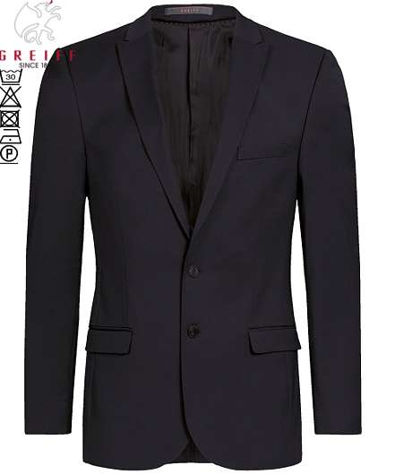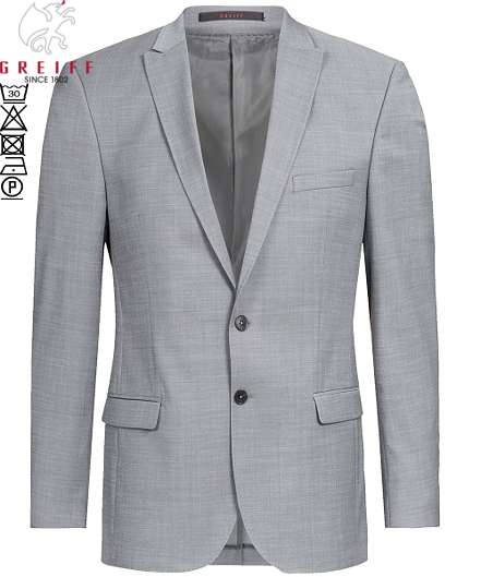 Ca. 190 g/m², 30° waschbar, MODERN-Line, Slim Fit, 2-Knopf, Spitzfacon, 2 Pattentaschen, 1 Brustleistentasche, 3 Innentaschen, AMF-Handstich, Rückenschlitz, halbgefüttert, Rückenlänge bei Gr. 50 ca. 72 cm, Stretch, Greiff Sakko in schwarz, hellgrau und dunkelblau erhältlich, BITTE WÄHLEN SIE DIE FARBE AUS, Gr. 42-54, 90-106