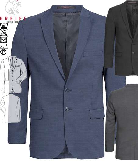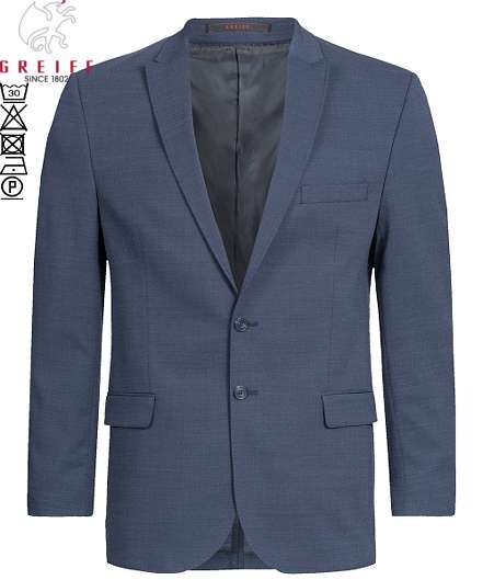 Ca. 190 g/m², 30° waschbar, Stretch, Greiff Sakko MODERN in Pinpoint marine oder Pinpoint mittelblau (Pinpoint schwarz nicht mehr lieferbar), Regular fit, 2-Knopf, Spitzfacon, 2 Pattentaschen, 1 Brustleistentasche, 3 Innentaschen, AMF-Handstich, Rückenschlitz, halbgefüttert, Rückenlänge bei Gr. 50 ca. 75 cm, bitte wählen Sie die Farbe aus, Gr. 44-64, 90-114, 24-30