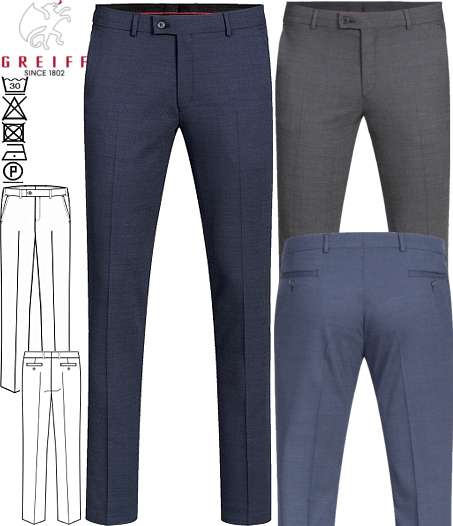 Ca. 190 g/m², 30° waschbar, Greiff Anzughose MODERN-Line in Pinpoint marine oder Pinpoint mittelblau (Pinpoint schwarz nicht mehr lieferbar), niedrige Leibhöhe, LIEFERUNG ERFOLGT OHNE GÜRTEL, Stretch, elastischer Bund, 2 Seitentaschen, 2 Gesäßtaschen, Vorderhosenfutter, Fußweite bei Gr. 50 ca. 36 cm, Schrittlänge bei Gr. 50 ca. 82 cm, bitte wählen Sie die Farbe aus, Gr. 42-54, 90-106